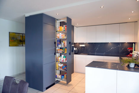 Ob in Schwarz oder Weiß – diese Küche setzt Akzente und bietet durchdachte Stauraumlösungen und innovative Features, die den Alltag in der Küche erleichtern.